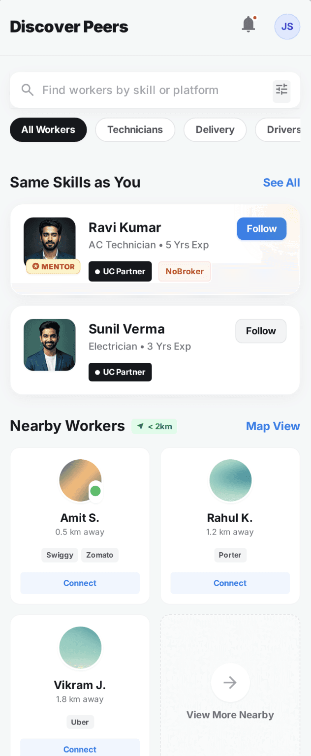 Setu connects you with nearby workers and peers — so learning comes from real experience, not just instructions.