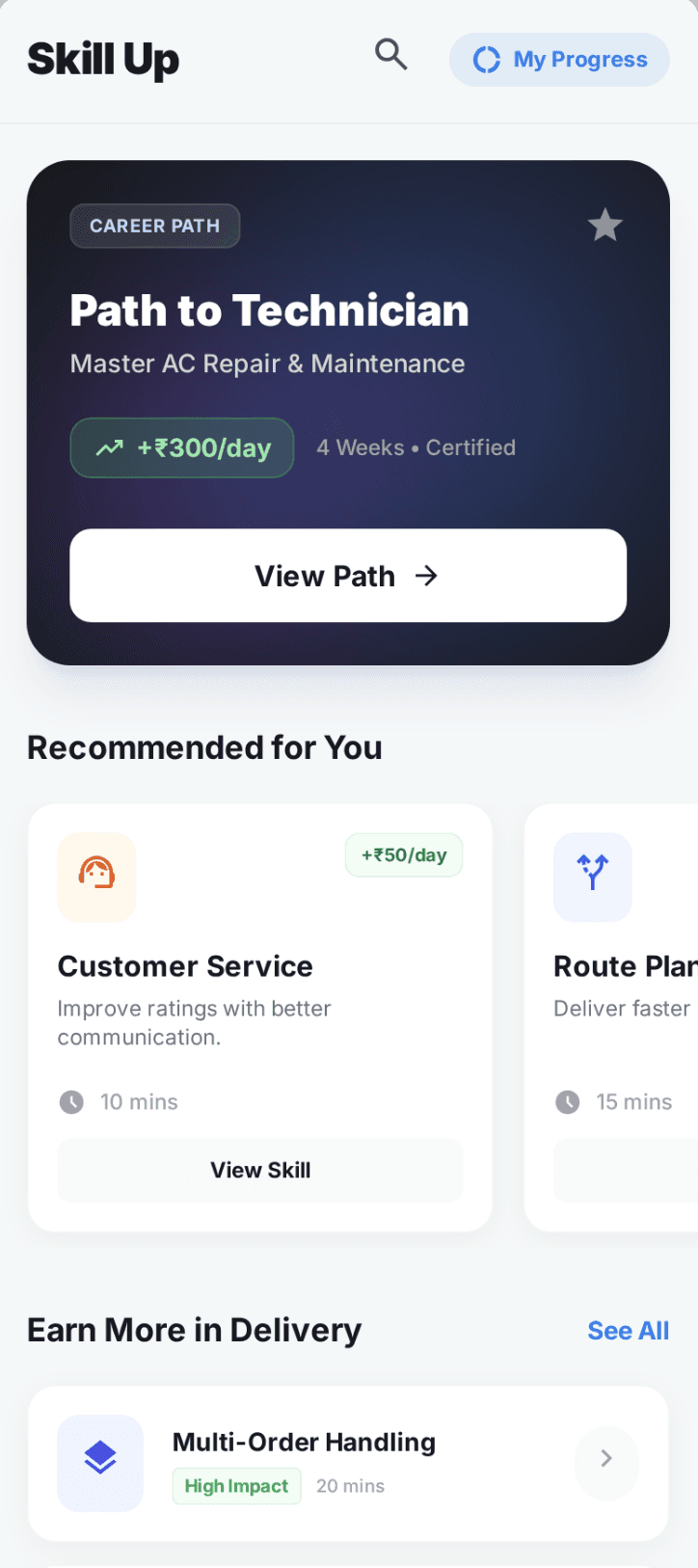 Setu helps you move towards better-paying work, without asking you to stop working to “learn”.